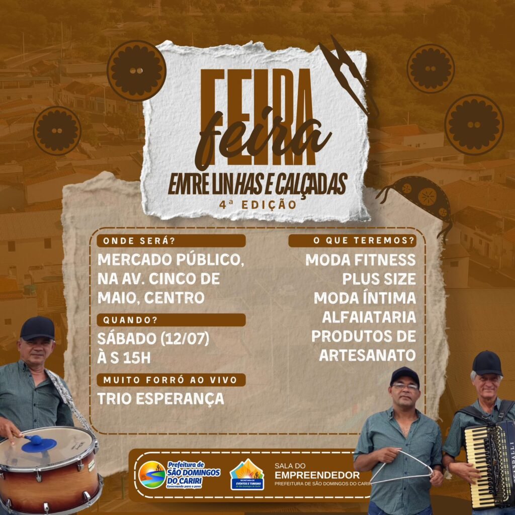 O município de São Domingos do Cariri se prepara para mais uma grande celebração da cultura, arte e empreendedorismo local com a realização da 4ª edição da Feira “Entre Linhas e Calçadas”, que acontecerá no próximo sábado, 12 de junho, a partir das 15h no mercado publico da cidade.
