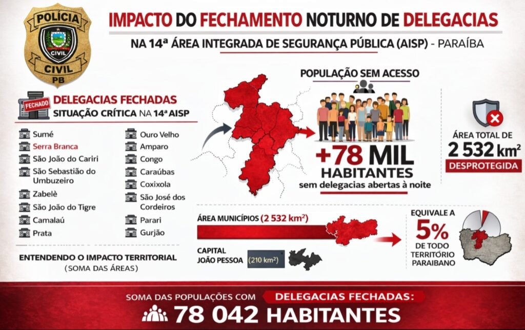 A Polícia Civil da Paraíba enfrenta, o que integrantes da própria corporação classificam como a maior crise estrutural de sua história recente. A partir de Março, o chamado “EXTRA ZERO” da Categoria Investigativa deve provocar impacto direto no funcionamento das unidades policiais em todo o Estado da Paraíba, podendo comprometer o atendimento em cerca de metade das delegacias paraibanas.