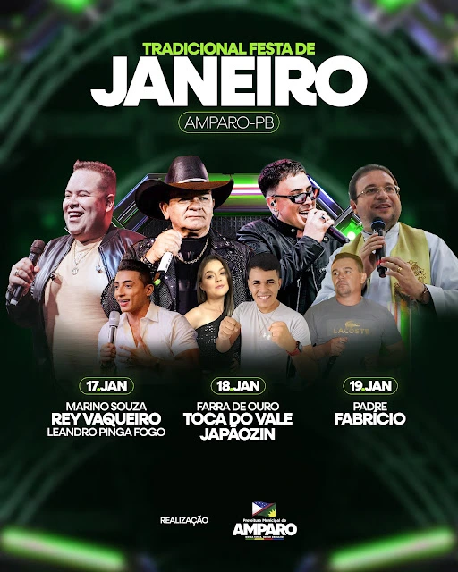 O prefeito de Amparo, Tarcio Gabriel, divulgou nessa sexta-feira (03/01) as atrações da tradicional Festa de Janeiro de 2025. Esse ano, acontecerá uma mudança nas datas, com os shows em praça pública sendo realizados com o início dos festejos religiosos.