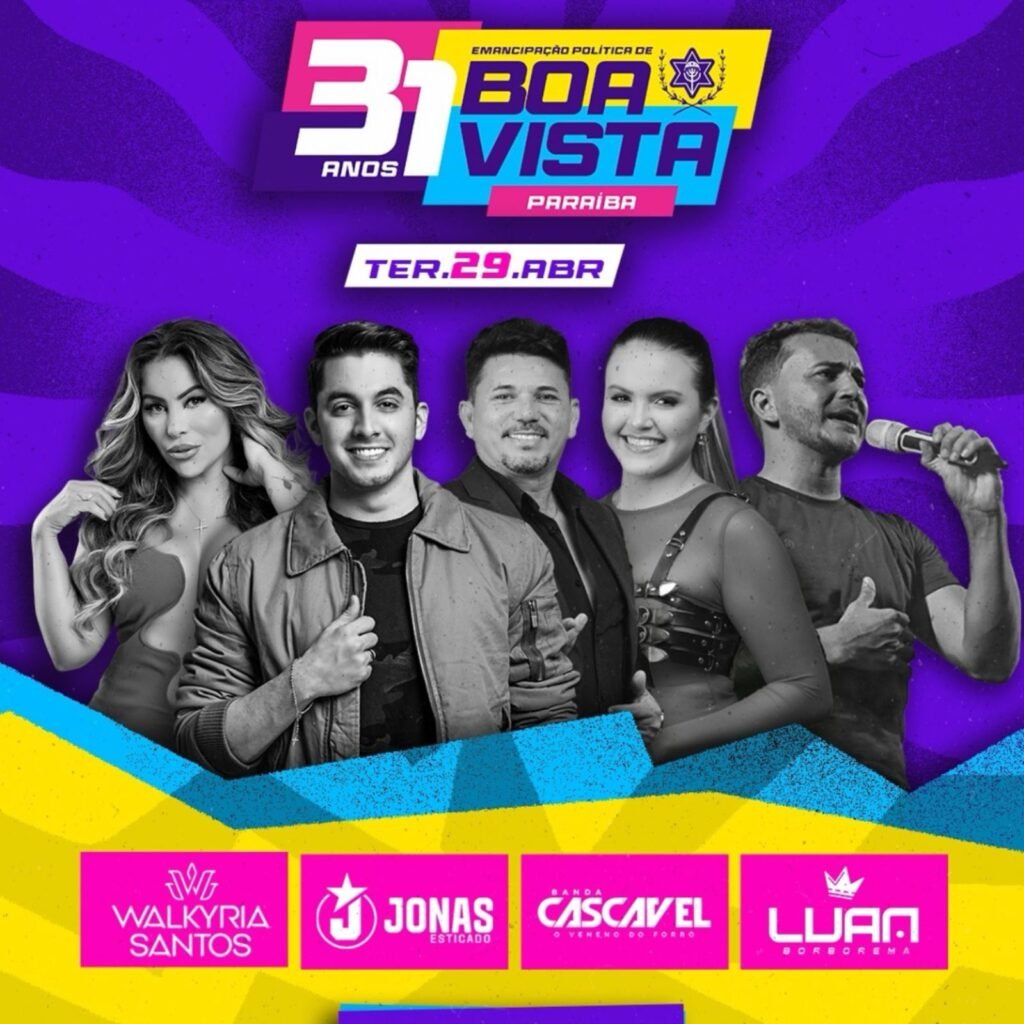 A Prefeitura de Boa Vista anunciou na noite desta terça-feira (1) as atrações que irão animar a festa de 31 anos de emancipação política do município. O evento acontecerá no dia 29 de abril e promete reunir um grande público para celebrar essa data especial.
