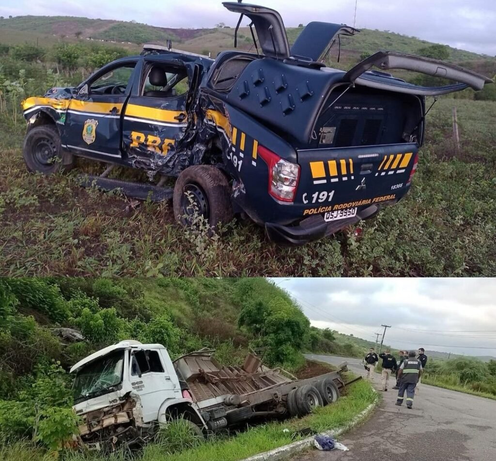 Uma colisão entre uma viatura da PRF e um caminhão foi registrada na madrugada desta quarta-feira (3) no Riachão do Bacamarte (BR-230) por volta de 3h30.