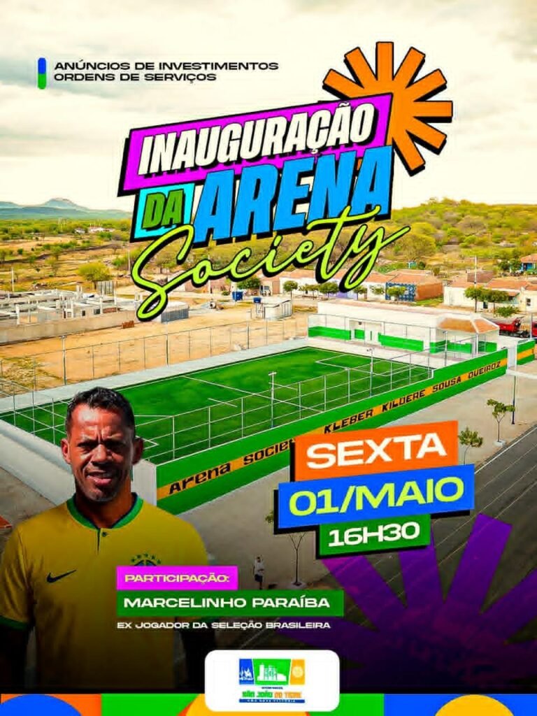 A Prefeitura Municipal de São João do Tigre realizará nesta sexta-feira (1º de maio), feriado do Dia do Trabalhador, a inauguração da nova Arena Society de futebol do município. A solenidade está marcada para as 16h30 e promete reunir autoridades, desportistas e a população em geral.