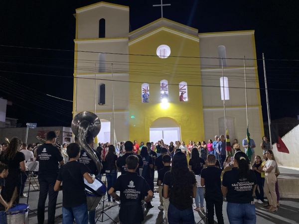 A noite também contou com uma quermesse, oferecendo diversas comidas típicas da região caririzeira, ao som da Banda Filarmônica São Domingos de Gusmão, proporcionando um ambiente de celebração e alegria.