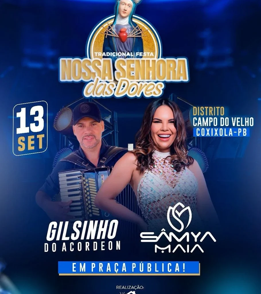 A programação contará com dois grandes shows: a cantora Sâmya Maia, considerada uma das vozes mais marcantes do forró nordestino, e o artista da terra Gilsinho do Acordeon, que leva o nome de Coxixola com seu talento por onde passa.