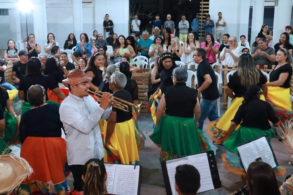 A programação contou com apresentações culturais que encantaram o público, entre elas o grupo de metais da Banda Marcial Antônio Queiroz Souto (BMAQS), a Orquestra de Sanfona do município de Gurjão, o cantor local Divone do Acordeon e a Companhia Folclórica Itaquatiara, proporcionando uma noite marcada por emoção, celebração e valorização da cultura popular.