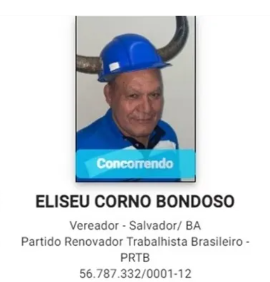 Eliseu Corno Bondoso (PRTB) já tentou ser deputado estadual da Bahia, em 2006, e também disputou as eleições de 2022 para deputado federal pelo estado. Em 2020, o comerciante de 68 anos se candidatou a vereador de Salvador, mas não foi eleito.