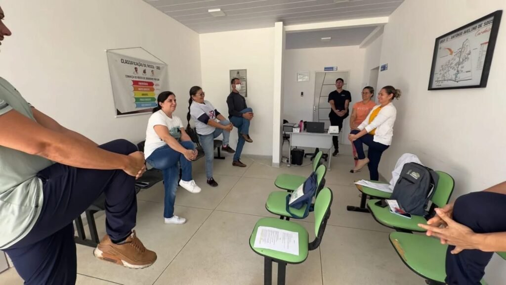 Estiveram presentes os profissionais da UBS do Cardeiro, a fisioterapeuta Larissa Costa e o educador físico Anderson Garcia, reforçando o compromisso da gestão com o cuidado de quem cuida.