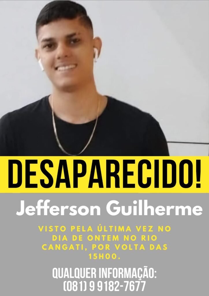 A família de Jefferson Guilherme, jovem natural de Santa Cruz do Capibaribe, em Pernambuco, está desesperada em busca de informações sobre seu paradeiro. Ele desapareceu na tarde de ontem (04) após sair para um banho no Cangati em Caraúbas, no Cariri paraibano.