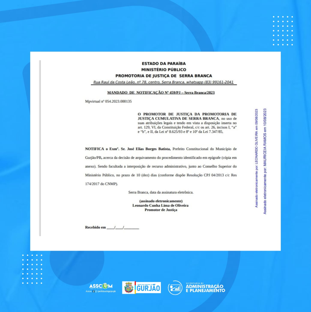 A Prefeitura de Gurjão também citou que os inquéritos abertos relacionados a essas compras como também outros, já foram arquivados por não terem fundamentos.