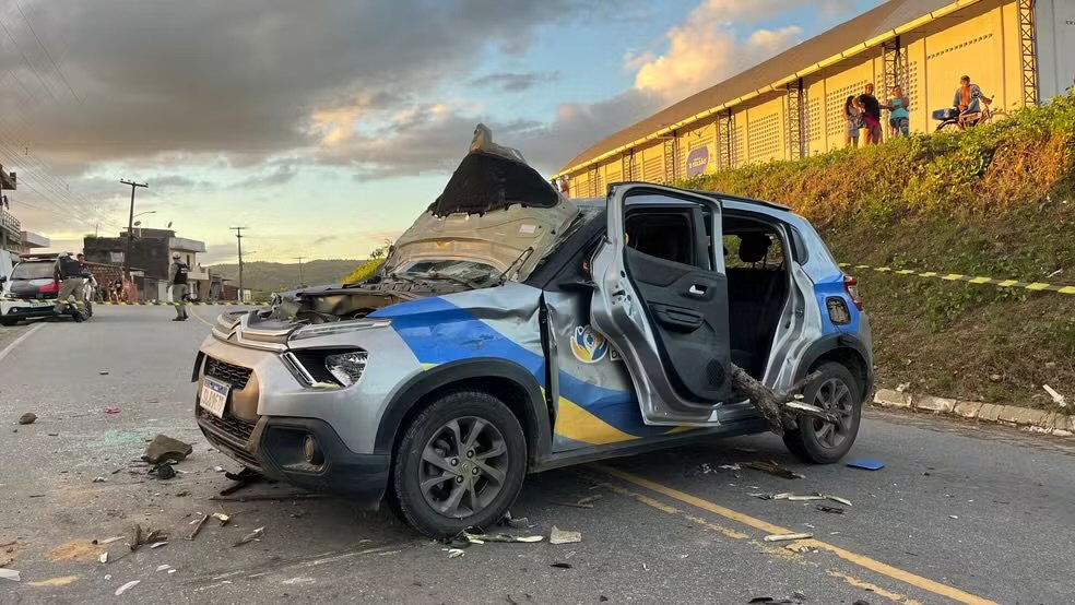 O carro da prefeitura municipal foi apreendido e a polícia informou que o veículo está em estado regular, mas a liberação está vinculada a apresentação do motorista suspeito.