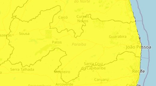 O Instituto Nacional de Meteorologia (INMET) emitiu um alerta de chuvas intensas com grau de severidade classificado como perigo potencial para toda a Paraíba nesta segunda-feira (20).