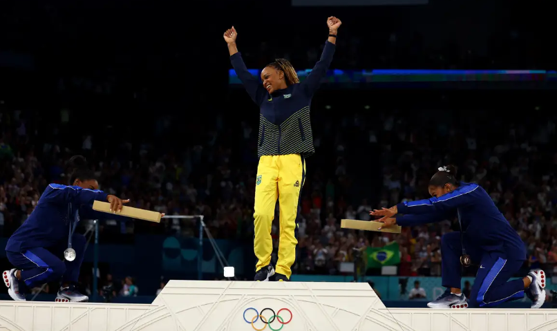 Mas Rebeca não ficou à sombra da norte-americana. Mais do que mostrou, comprovou ter brilho próprio. O ouro no solo, desbancando Biles, foi um dos pontos altos da ginástica em Paris e, merecidamente, ela foi reverenciada ao receber a medalha no pódio. De quebra, Rebeca saltou para o topo da lista de atletas olímpicos do Brasil. Em Paris, foram quatro medalhas (um ouro, duas pratas e um bronze), que, somadas às duas conquistadas em Tóquio, a colocam como a maior medalhista do país em Olimpíadas.