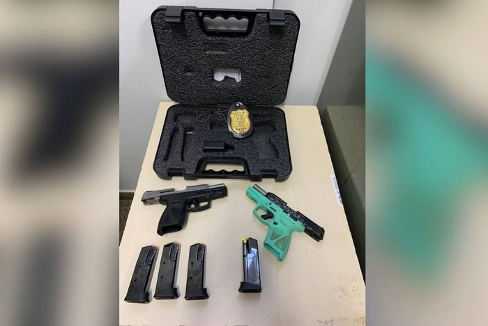 Ao cumprirem o mandado judicial no imóvel, que fica no Gama Leste, os policiais encontraram e recolheram duas pistolas, uma delas .40 e outra de calibre 9mm, além de quatro carregadores.