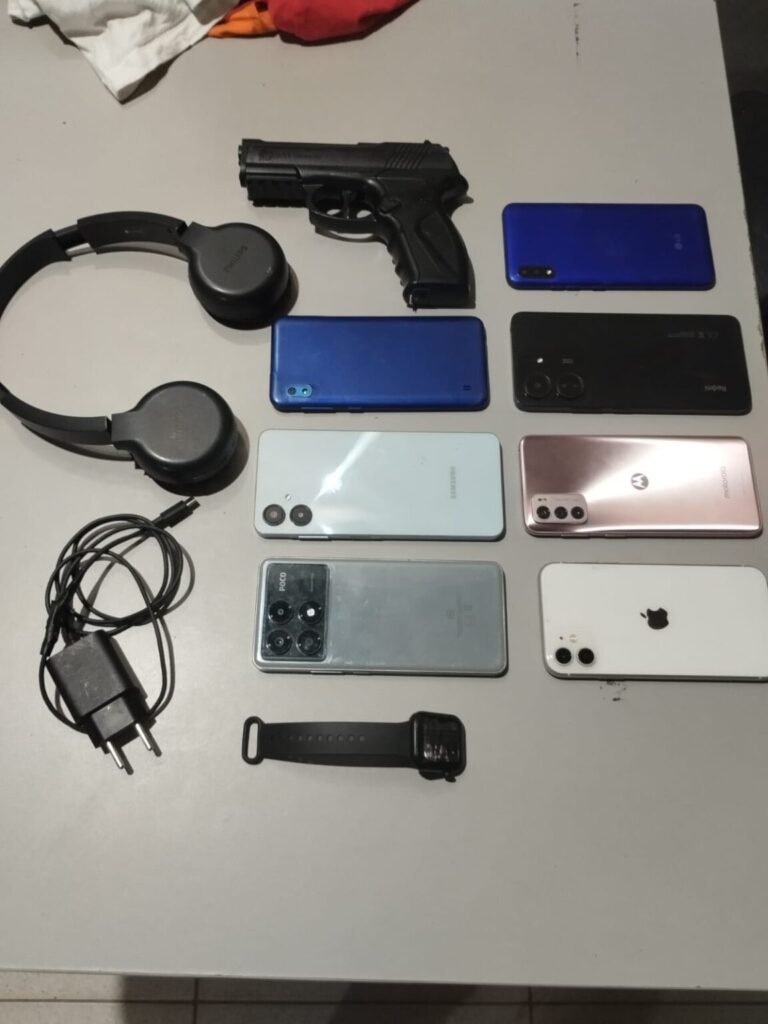 Durante a ação, foram recuperados 07 aparelhos celulares roubados e apreendido um simulacro de arma de fogo.