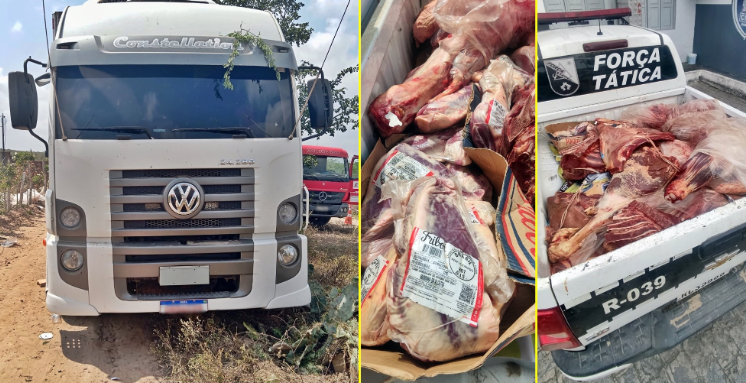 A Polícia Militar foi acionada após receber informações sobre um caminhão frigorífico abandonado no sítio Caluete, no município de Boa Vista, no Cariri da Paraíba. Ao chegar ao local, os policiais encontraram o veículo aberto, mas sem a carga de carne.