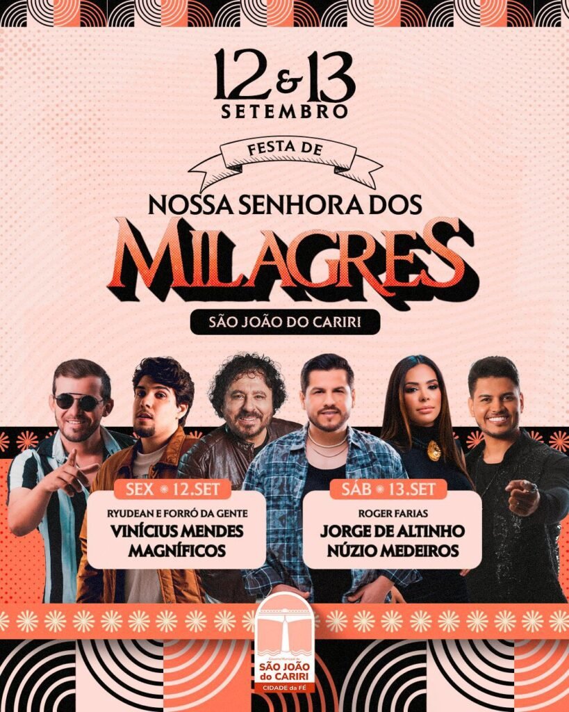 “A Festa de Nossa Senhora dos Milagres é um marco para São João do Cariri, unindo tradição religiosa e celebração popular. Estamos preparando uma grande estrutura para receber com segurança e alegria todos os filhos da terra e visitantes que vêm prestigiar esse momento tão especial.”