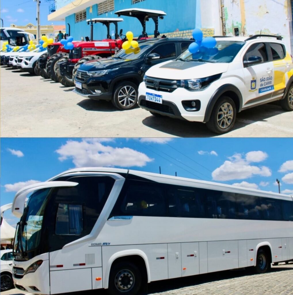 Durante o evento, foram entregues à população um moderno ônibus rodoviário, que irá fortalecer o transporte e atender diversas demandas do município, dois tratores, fundamentais para o fortalecimento da agricultura e apoio ao homem do campo, além de outros veículos que passam a integrar a frota municipal, garantindo mais eficiência aos serviços públicos.
