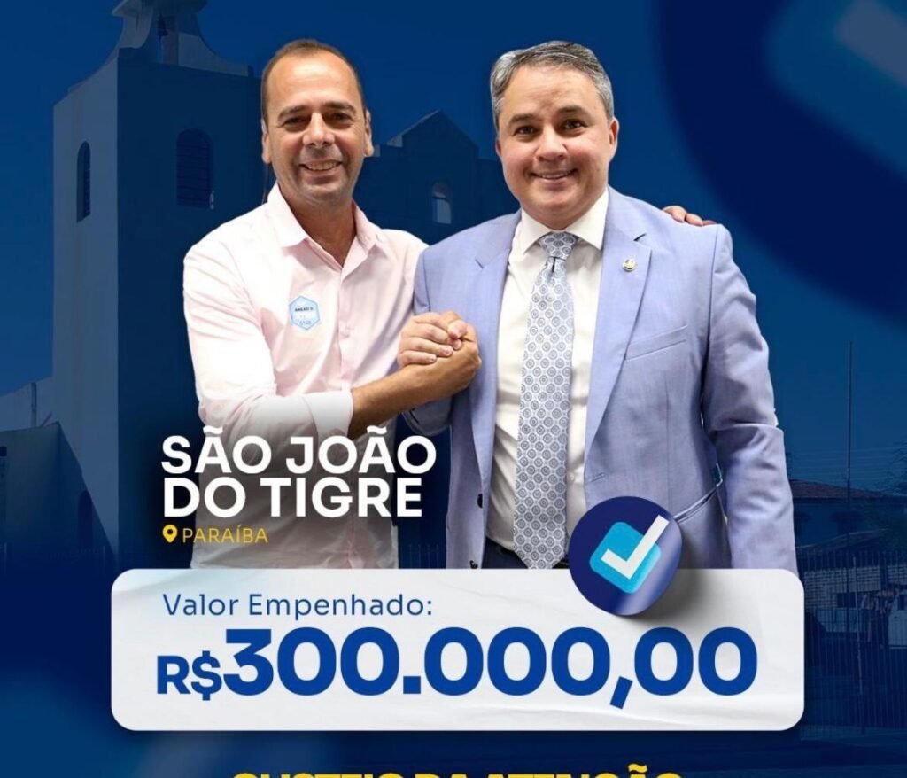 A Prefeitura de São João do Tigre recebeu um importante reforço financeiro para a área da saúde. O senador Efraim Filho destinou uma emenda parlamentar no valor de R$ 300 mil, que será utilizada exclusivamente para o custeio da Atenção Primária à Saúde no município.