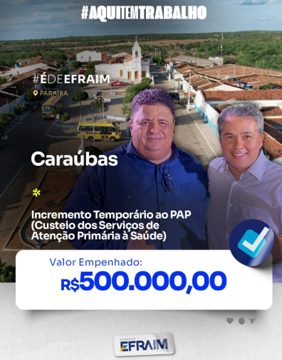“Os recursos serão destinados à saúde de Caraúbas, que já é uma referência regional. Desta forma, com nossos parceiros conseguimos um volume de recursos jamais investidos na história de nossa amada cidade,” disse.