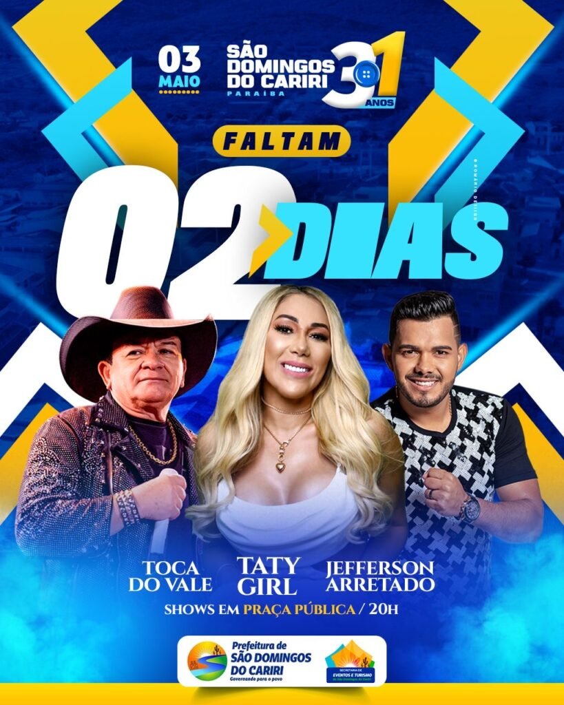 A festa contará com shows de Taty Girl, Toca do Vale, e Jefferson Arretado, nomes consagrados no cenário musical nordestino. A expectativa é atrair um grande público, especialmente de cidades vizinhas da região do Cariri, impulsionando o comércio local e fortalecendo o turismo cultural, já que este é mais um momento que faz parte do calendário de eventos do município.